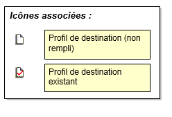 L'écran du profil affiche le site et le service de la destination et la date de la dernière mise à jour. La date est affichée en rouge si le profil n'a pas été mis à jour l'année passée.