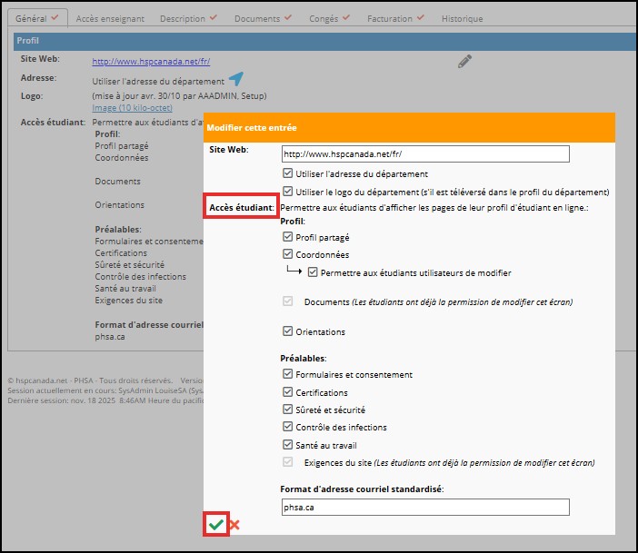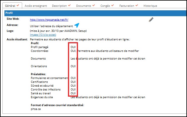 Les coordonnateurs demandeurs administrateurs locaux peuvent permettre à leurs étudiant.e.s de consulter une ou plusieurs pages de leur Profil d'étudiant en ligne. L'étudiant.e a accès à chaque page de son profil en lecture seulement.
