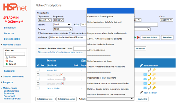 Étape 1 – Passer en revue les inscriptionsAvant d'effectuer l'AAE, vous devez réviser les inscriptions des étudiants pour vous assurer qu'ils soient éligibles pour le stage dans le cours.