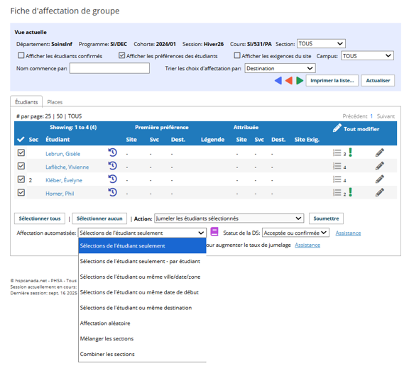 Communiquez avec le centre d'assistance de HSPnet à assistance@hspcanada.net pour demander qu'on active la fonctionnalité d'affectation automatisée pour vos programmes d'études. |